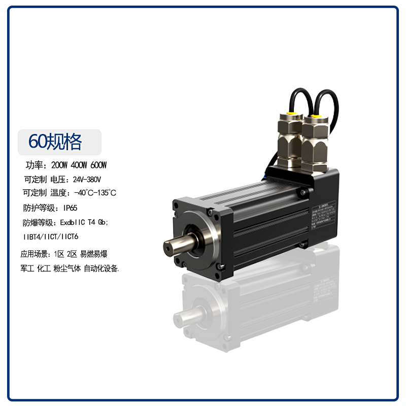 南京IIBT4/IICT4/IICT6防爆等级防爆伺服电机60系列200W400W应用军工化工粉尘气体 1区2区0区防爆应用AGV小车卷绕机灌装机喷涂机